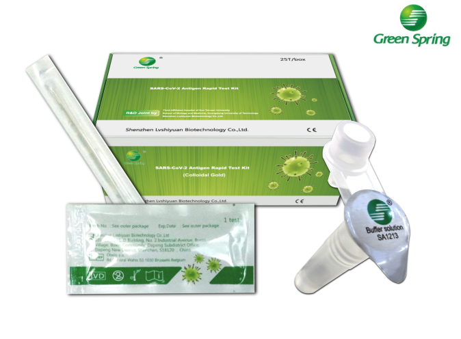 Produktbeschreibung: Der Green Spring Antigen Schnelltest (Colloidal Gold). Lateral-Flow-Immunoassay zum qualitativen Nachweis von Nucleocapsid-Protein-Antigen mit sanftem Nasenabstrich im vorderen Bereich. Desgleichen auch als Spucktest nutzbar, ebenso auch als Rachentest einsetzbar und als Lollitest. Also 4 in 1 ✓ BfArM zugelassen!