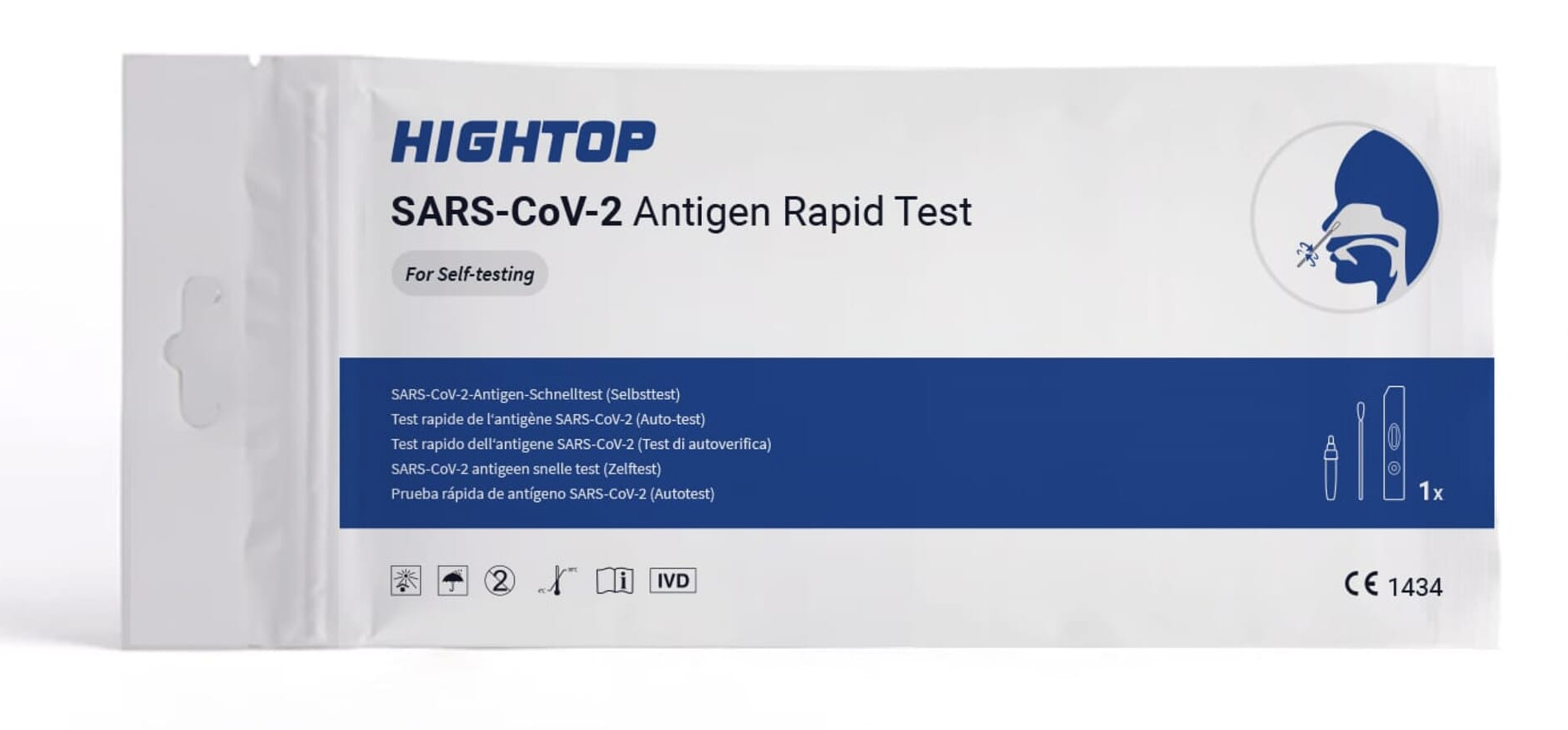 Der HIGHTOP Antigen-Schnelltest zur Eigenanwendung wird für den Nachweis von SARS-CoV-2-Antigenen in Proben aus dem vorderen Nasenhöhlenbereich verwendet.
