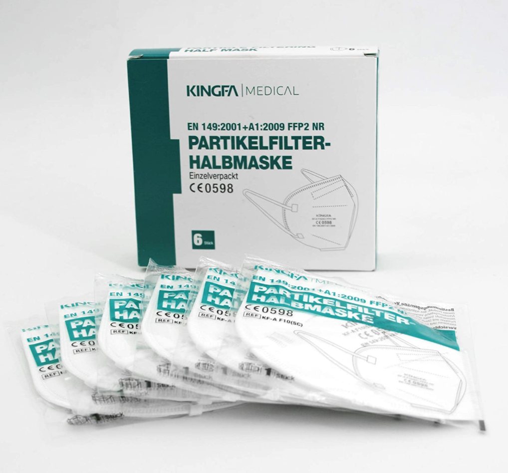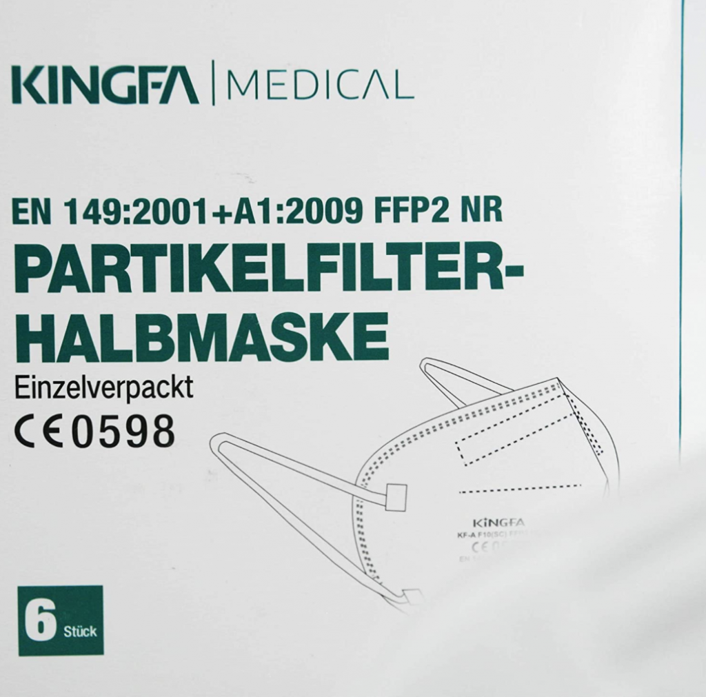 Diese Maske ist eine Kingfa FFP2 NR und entspricht der EN149:2001, A1:2009. Bei der ZDF Reportage „FFP2-Masken unter dem Prüfstand“ hat diese Maske mit als BESTES Produkt abgeschnitten