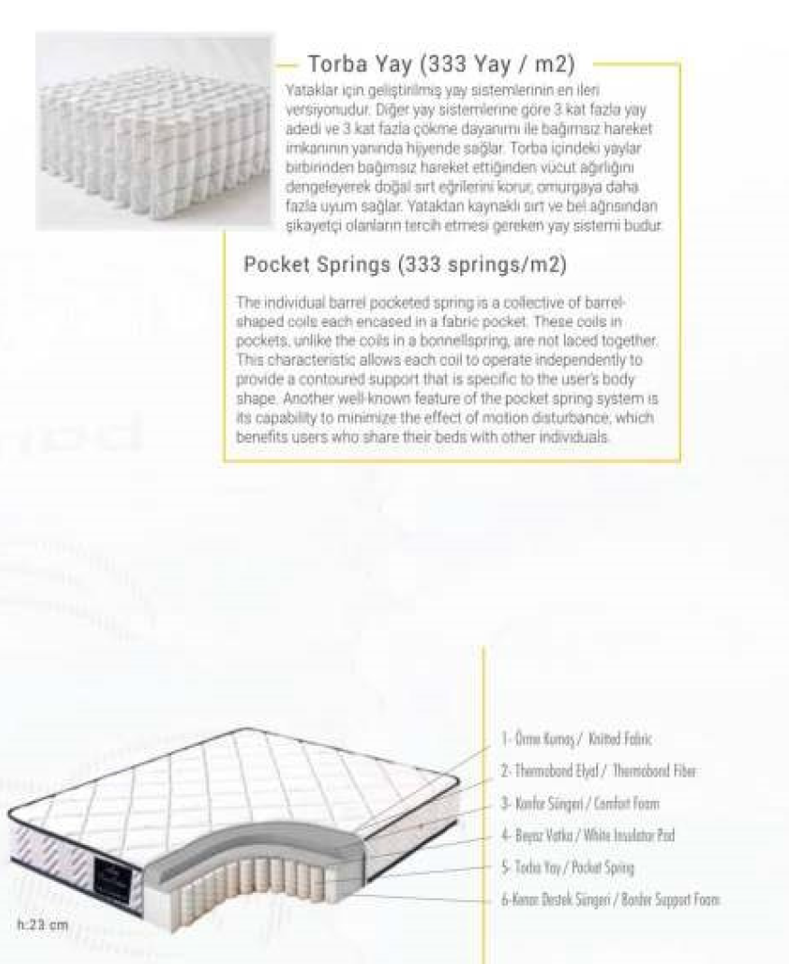 Es ist die fortschrittlichste Version von Federsystemen bietet es 3-mal mehr Federn und 3-mal mehr Bruchfestigkeit, sowie die Möglichkeit der unabhängigen Bewegung und Hygiene. Da sich die Federn in der Tasche unabhängig bewegen, gleicht sie das Körpergewicht aus und paßt sich der Wirbelsäule besser an. Das Federsystem zur Vermeidung von Rücken- und Hüftschmerzen, die von der Matratze verursacht werden.